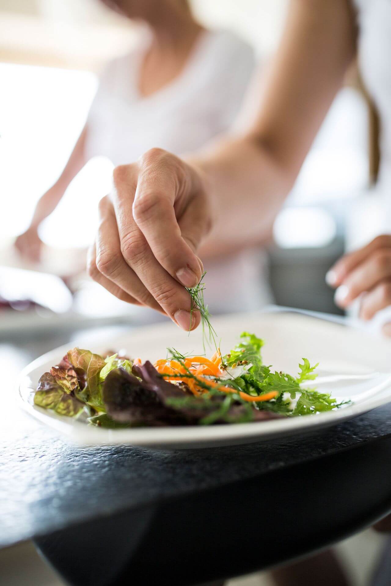 Bei dieser Methode werden während der Fastentage überwiegend basische Obst- und Gemüse-Gerichte in roher und gedämpfter Form mit Kräutern und Salaten serviert - ca. 600 kcal pro Tag.