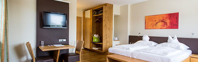 Die geräumigen Doppelzimmer vermitteln Wohlfühlatmosphäre für Ihre Auszeit am Klosterberg. Ob zu zweit oder allein - hier herrscht eine ideale Wohlfühlatmosphäre.