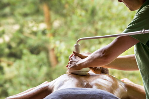 Die Wirkung des Fastens unterstützen Massage- und Kosmetikbehandlungen. Berührungen mit der Hand lösen im Körper Reaktionen aus: Hautfunktionen und Stoffwechsel werden angeregt und die Elastizität der Sehnen und Bänder nimmt zu.